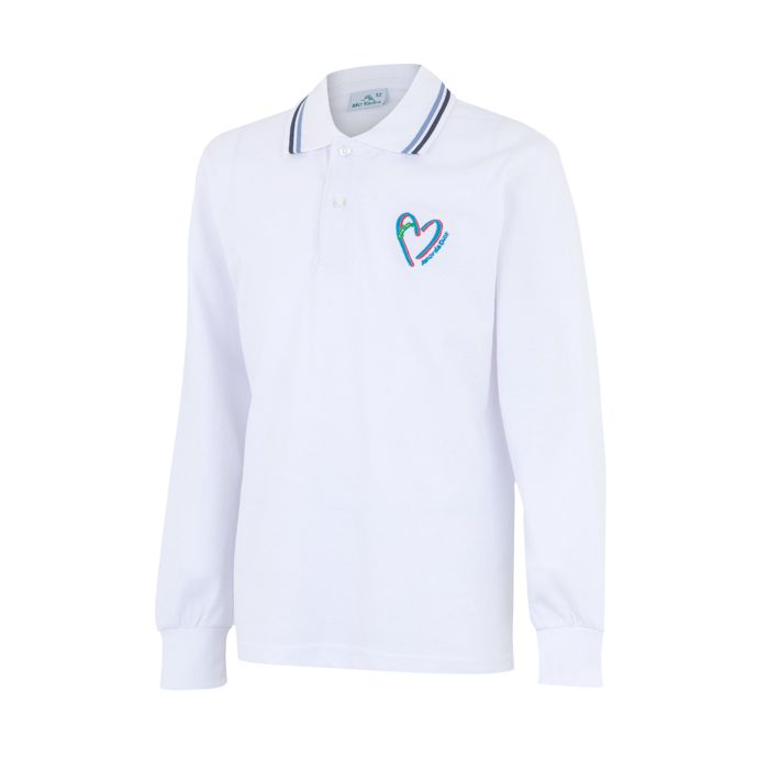 - Polo colegial de manga larga, realizado en piqué con cuello de canalé, puños de elástico